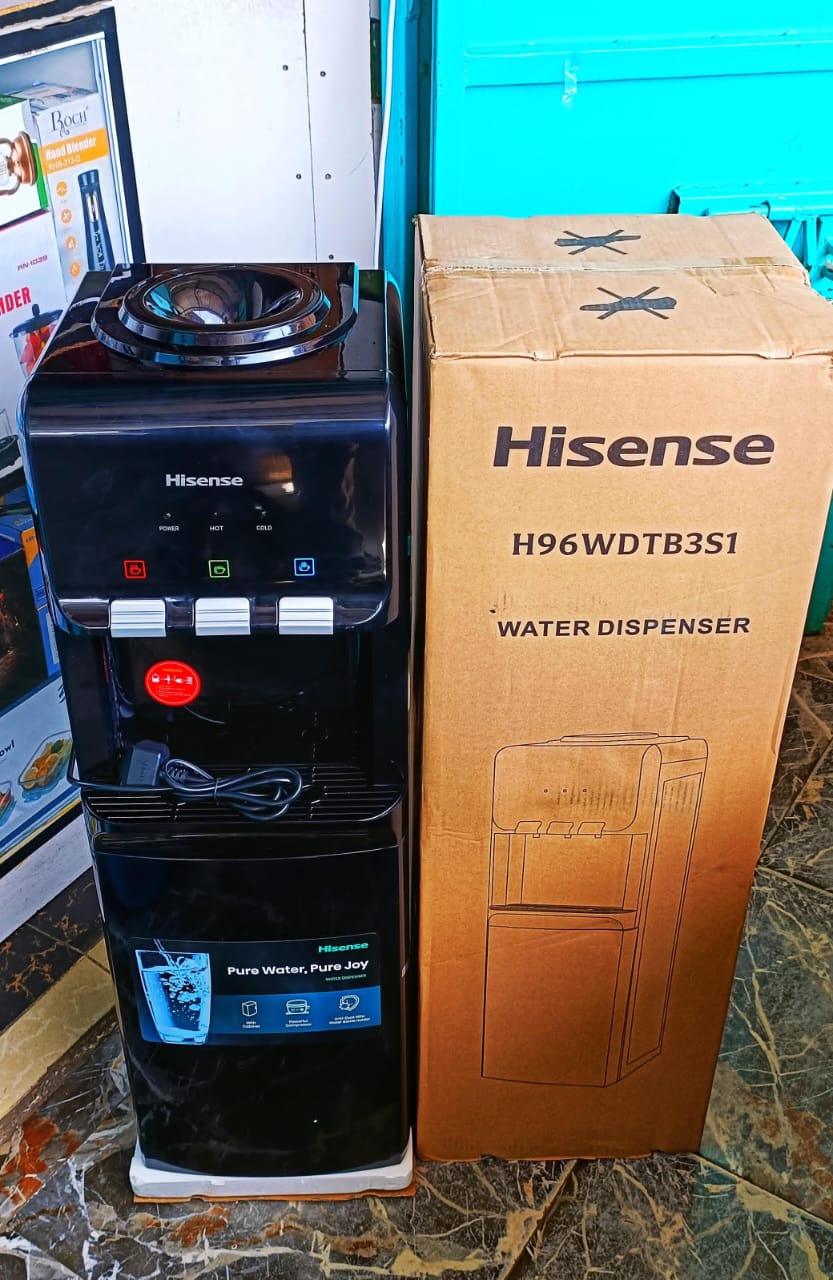 Streamline your daily hydration with the Hisense 3-Tap Water Dispenser, offering instant access to refreshing hot, normal, and cold water for all your needs. Featuring a convenient top-loading design, a durable stainless steel water tank for purity, and a child safety lock on the hot water tap, this energy-efficient dispenser combines practicality with peace of mind. Its sleek, modern design seamlessly fits into any home or office, providing reliable performance and effortless operation with a built-in compressor for consistent temperature control